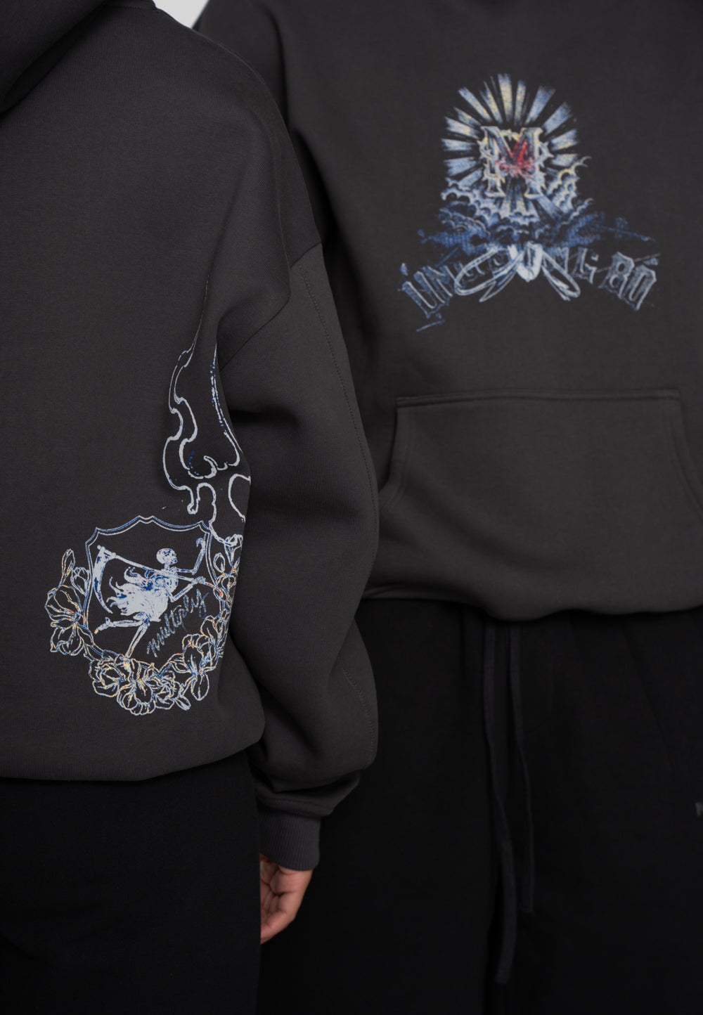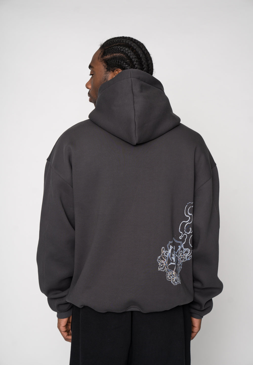 Oversized Hoodie INITIAL SKETCH Black Soda Washed